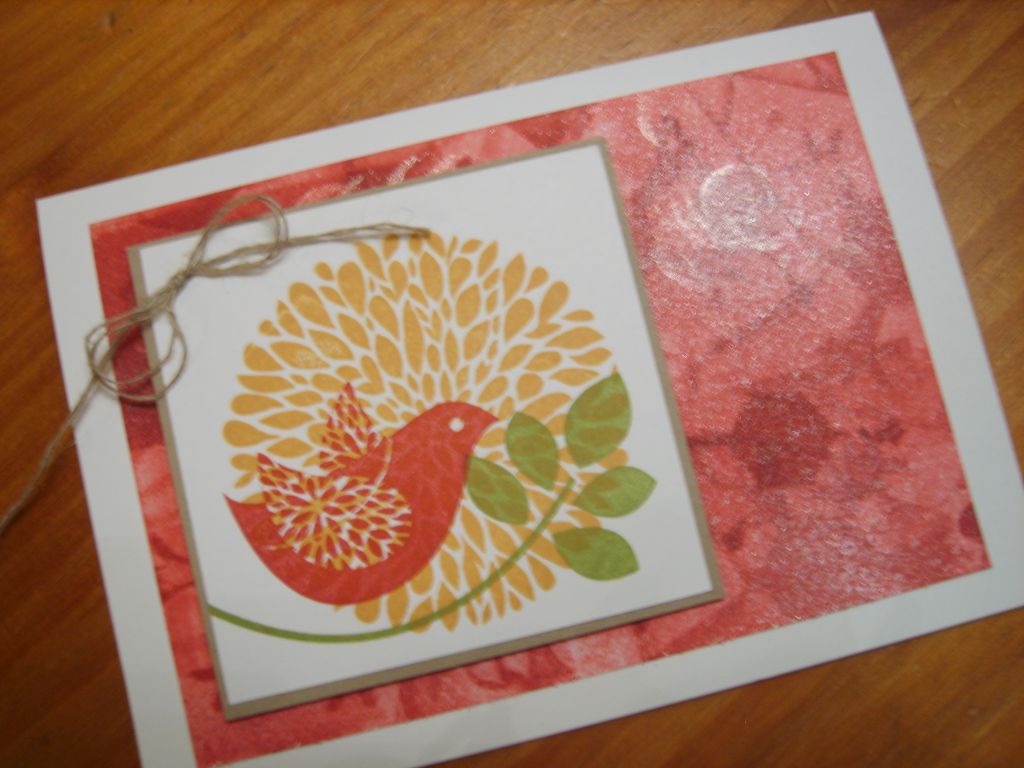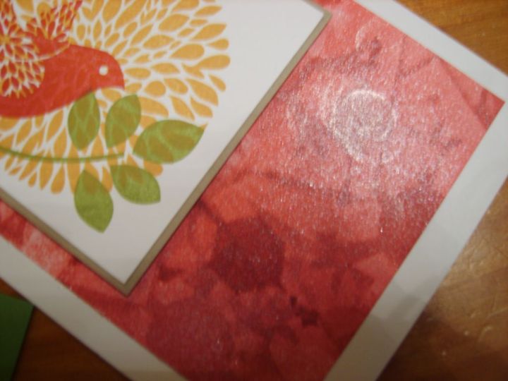 I brayered over them with „Raspberry Ripple“ ink like I did at the convention.My brayered backrounds begin always with my favorite SU product of them all, „Whisper White“ cardstock! And here is what I came up with! The pictures are not shiny because of bad lighting but because I used the new pigment ink „Stampin‘ Pad ILLUMINATE“!
