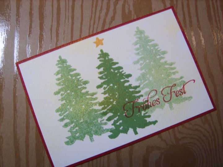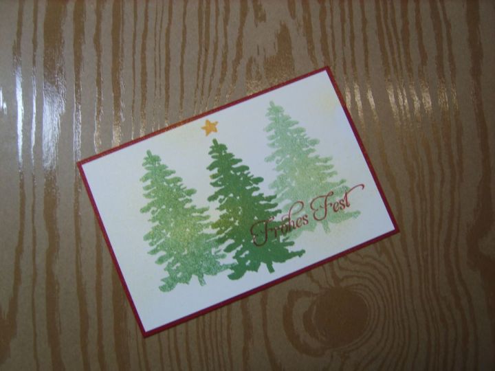 Hier eine ganz schlichte Karte in traditionellen Farben! (Chili und Gartengrün). Mein letztes Gold Smooch habe ich auf Papier (und dabei natürlich und auch auf Hände und Haar gesprüht! 🙂 )