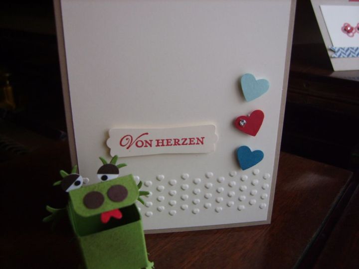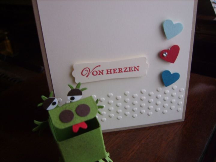 Dieses Gefühl kenne ich immer noch, dass ich alles auf einmal benützen möchte. Auch nach einem Jahr als Demo erinnert mich meinen Sohn: „Mama, deine Karte nicht überladen!!“ (Sehr interessant einen eigenen 12-jährigen „Kunstkritiker“ zu Hause zu haben!!! 😀 !) Ich befürchte, dass ich selbst meinen eigenen Frankenstein geschaffen habe!!) Aber dass so etwas nach 20 Jahren Bastelerfahrung immer noch passieren kann, wäre vielleicht wichtig anzusprechen!