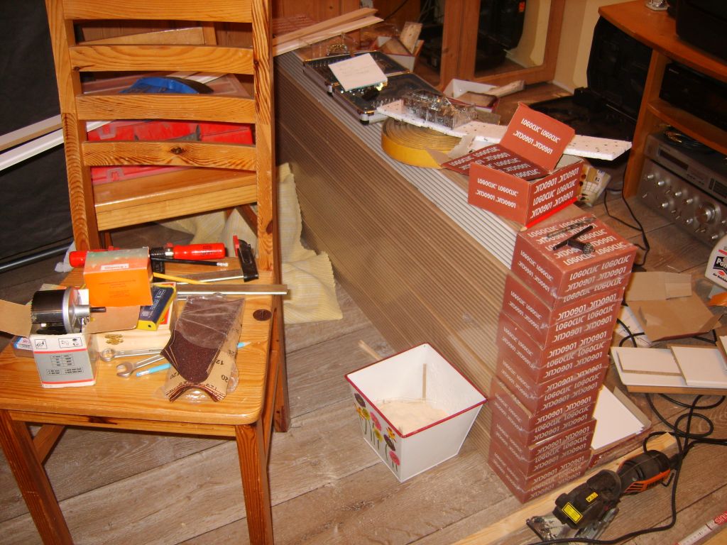 Durch unendlich viele Sägespäne und bergenweise Verpackungungsmaterial…kann ich einen winzigen kleinen Lichtlein erkennen! Mit Hilfe meine Freundin habe ich viele Schübläden zusammen geschraubt, und schwedische Möbel gehämmert, und gedübbelt! Noch 2 Schränkchen und dann eine Sonderanfertigung meines Mannes, einräumen und fertig!