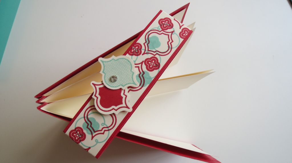 Here a matching card and mini photo album! I am loving the new colors and mosaic designs! New punch, embossing folder, and stamp-set all coordinated! I thought it would make life easier, but the choices are mind-boggling!