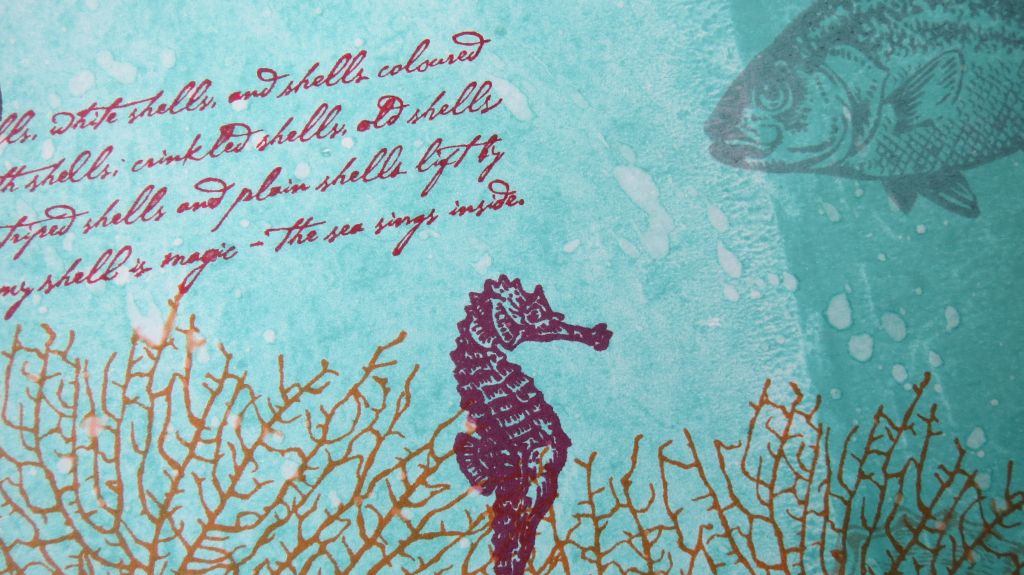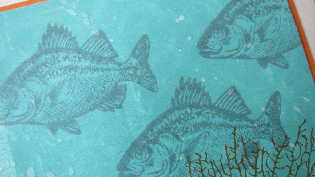 Here a brayered Bermuda Bay background with water sprinkled across the dried ink to give a nice mottled effect to the water. I applied more ink to one side for a shadow effect.