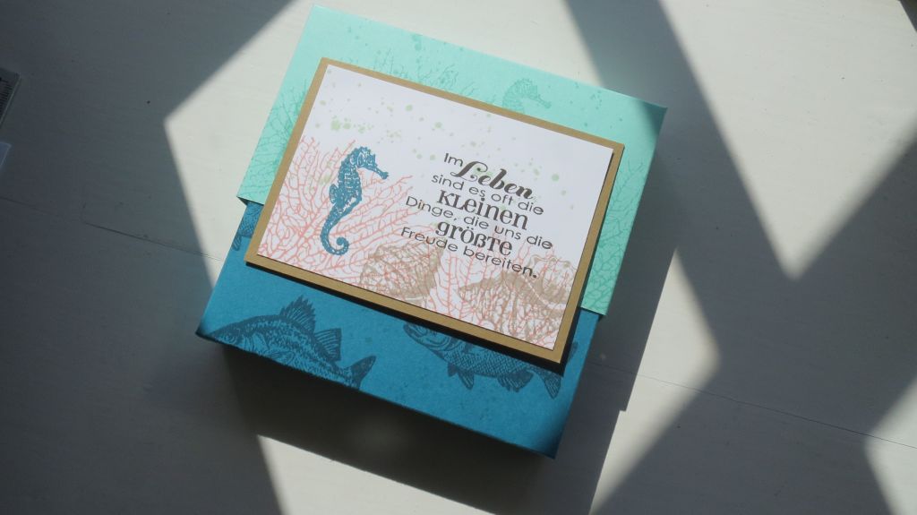 I filled the box with 5 different little gift cards which I simply stamped and scored. The whole project took me about 20 minutes.