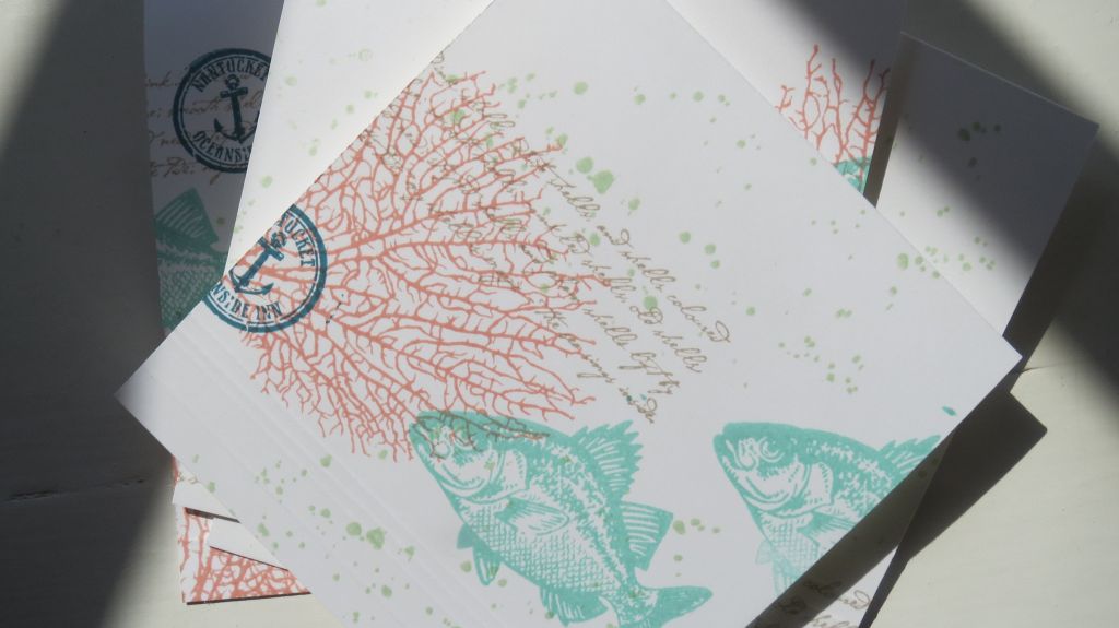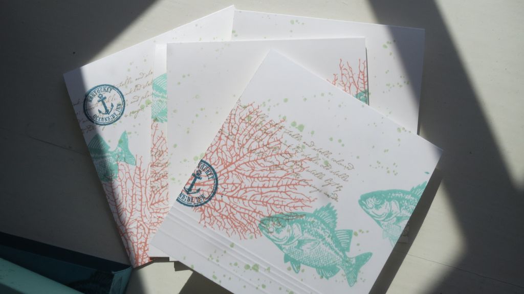 I just scored some little lines at the bottom of the cards for some dimension, lined up all of the cards and stamped them randomly so that they would match but not all look exactly alike.