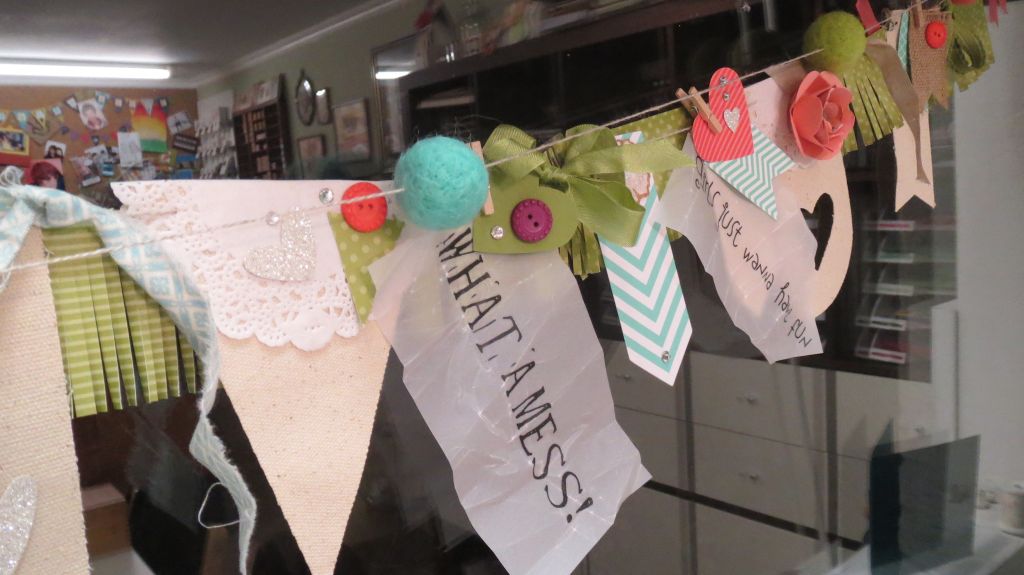 Hier habe ich mein Bastelzimmer mit meiner Version vom „Heartfelt Banner“ geschmückt. Eines von vielen Sale-a-bration Gratis-Produkten. (ab 60 Euro Bestellwert)