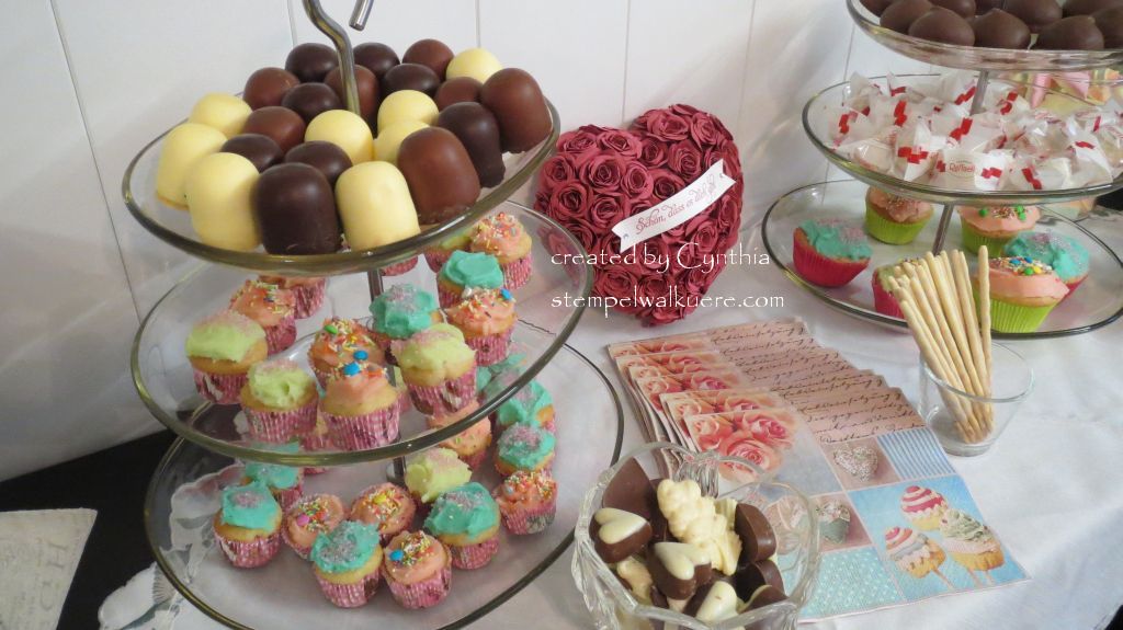 Well, what can one expect when you mix 500 grams of butter into 300 grams of powdered sugar, add a few drops of blue food coloring and smear it on the top of a poor unexpecting cupcake? Here is a part of the treats which I prepared for my Sale-a-brations / Spring Catalogue Party.