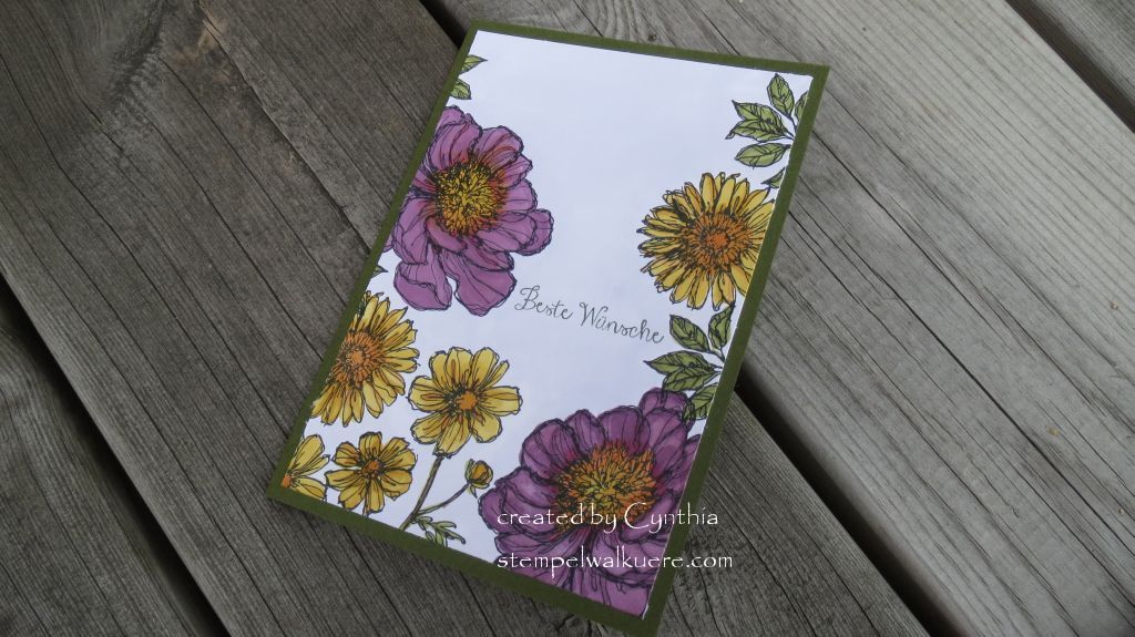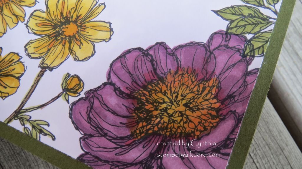 Love also the watercolor look you can get! I have used alcohol markers for many years now from various companies, but I am especially excited to be able to have them coordinate exactly with all of my Stampin‘ Up, ink pads, cardstock, designer series papers and embelishments. The possibilies are truly endless. Gotta get ‚um ALL!!!