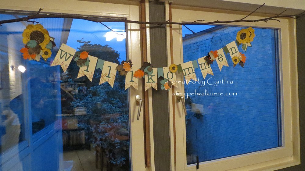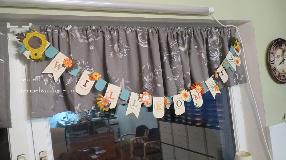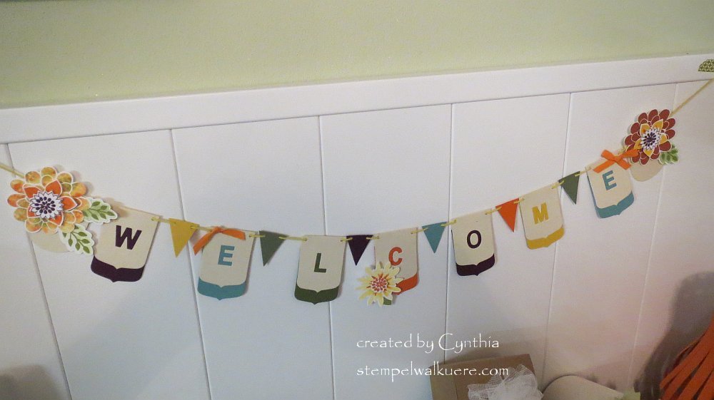 What a fun workshop yesterday! Once I got started, I could not stop! A welcome banner here, another there! I had lots of scraps, so I used them to make a mini banner! It was really easy with a mixture of banner „Framelits“ „Thinlits“ and „Bigz“ dies with my bigshot! All I had to do was stamp, punch, and decorate! FUN!