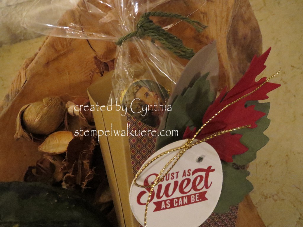 I guess this little gift could be for the fall or winter season! I used fall leaves and christmas colors. There is really no „right“ or „wrong“ That is what makes it so much fun to craft, you just start with a few materials and see where they lead you!