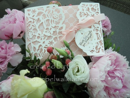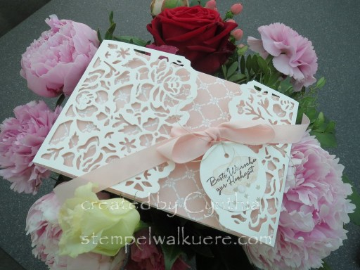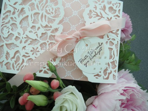Hier ist eine Hochzeitskarte mit DSP und Geschenkband aus dem neuen Katalog…