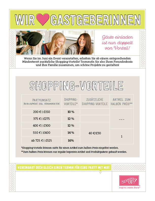 Auf jedem Fall richtig super vielseitige Stempel-Sets…alles GRATIS mit einer qualifizierten Bestellung ab 200 Euro! Bis Ende Juni gibt es sogar eine Sonderaktion, bei der ihr bei einer Bestellung ab 400 Euro zusätzlich zu den Prozenten noch weitere 40 Euro Shoppingvorteile erhaltet.