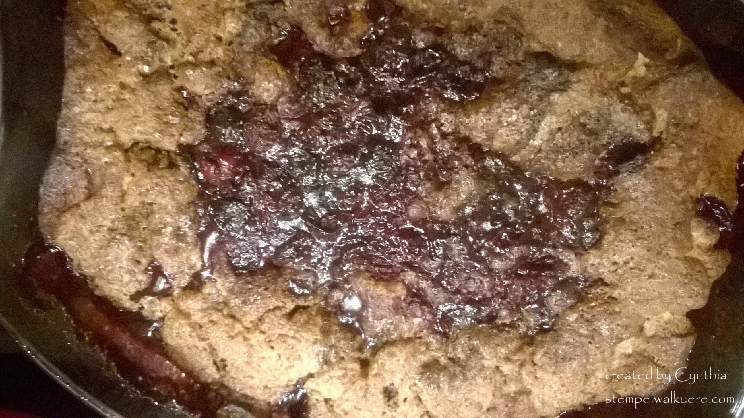 Easy Cherry Cobbler! Melt butter in baking dish, pour in batter over butter, pour in fruit, DO NOT STIR! Bake for 45 min.There will be absolutely no leftovers! 😀