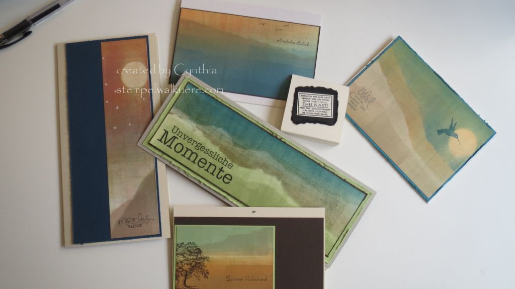 Beim Haltestelle „Stempelwalküre“ geht es immer nur um ein Stempel-Set. Ich versuche meine Kundinnen und meinTeam zu zeigen wie vielseitig ein Stempel-Set sein kann. Wie man die Möglichkeiten von diese Set ausreizen kann, in dem man Stil, Farbe, und Form verändert! Manchmal muss man einfach das Motiv nur ein bißchen drehen oder teilweise stempeln um einen komplet neuen Eindrück zu erwecken!